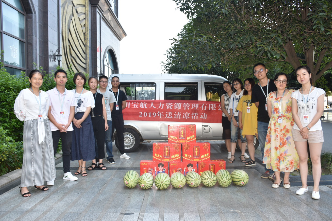 为做好公司夏季防暑降温工作,关心关爱一线班组和职工,近日,四川宝航人力资源管理有限责任公司组织开展了2019年“高温慰问送清凉,点滴关怀沁人心”活动。
