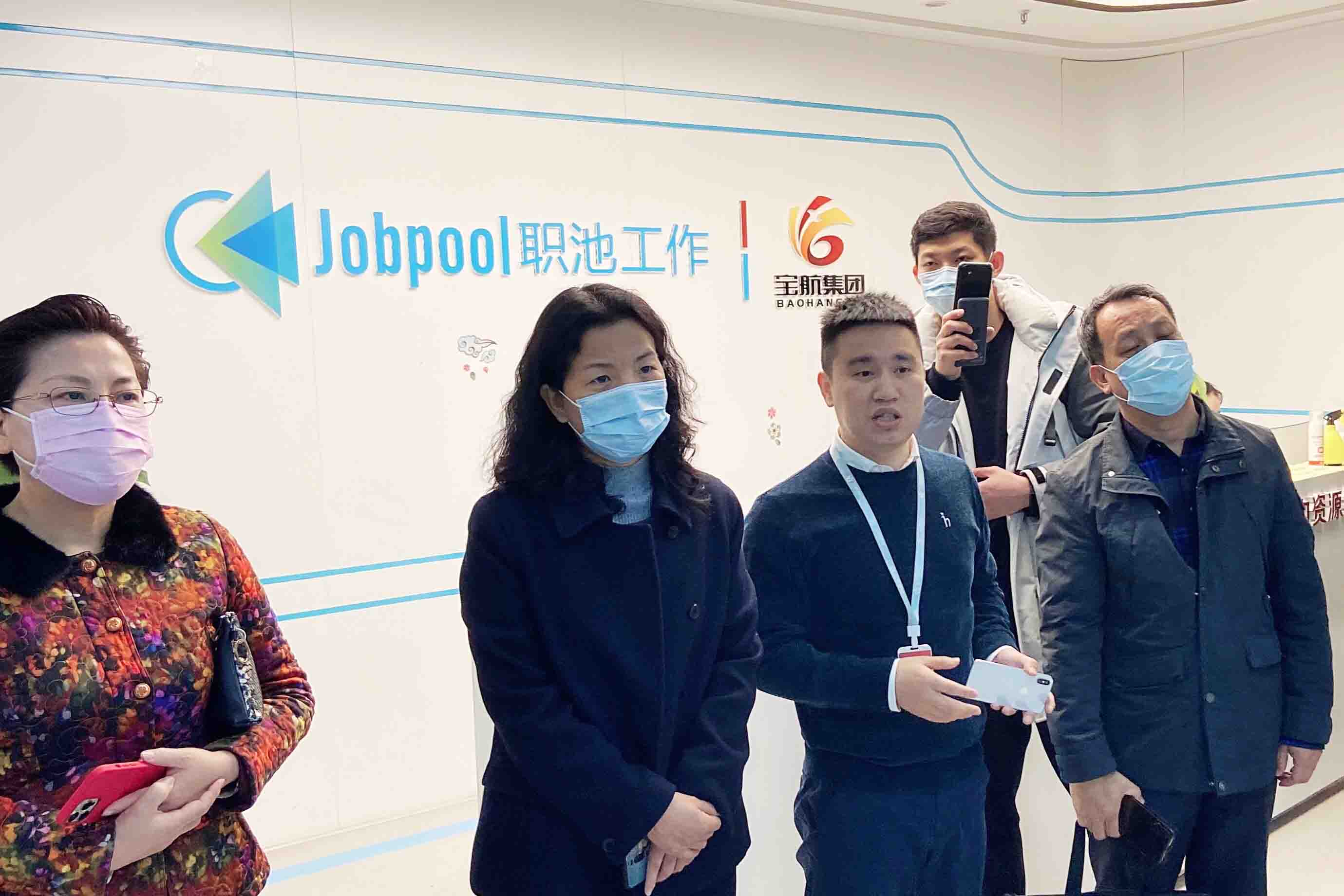 在宝航人力集团董事长黄栋先生以及商务BD经理杨东的陪同下,石家庄市人社局副局长王建敏考察团一一参观了宝航人力公司。