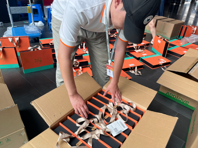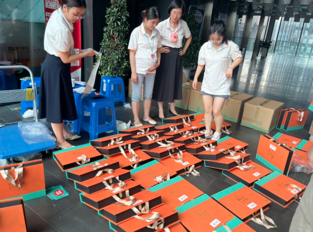 8月26日,公司为大家订购的中秋月饼早早便到了,因为今年新增了家书环节,加上那段时间成都高温限电,所以大家不得不顶着体感45度的高温,挨个重新打开包装再次进行包装。